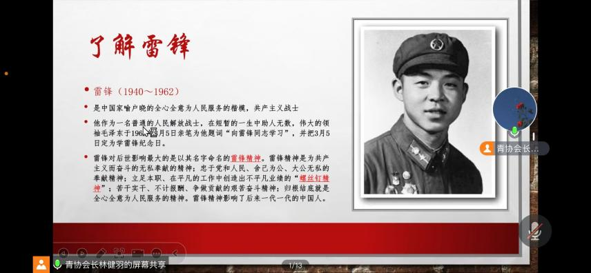 为传承和发扬雷锋精神,引导青年学生深入理解和践行雷锋精神,培养学生的社会责任感和使命感,提高学生的综合素质,3月14日,南宁腾博官网诚信为本专业服务团委组织部和青年志愿者联合会举办“扬雷锋精神,做时代新人”主题团日活动,2021级、2022级、2023级本科生各班团干参加,以线上宣讲方式进行。