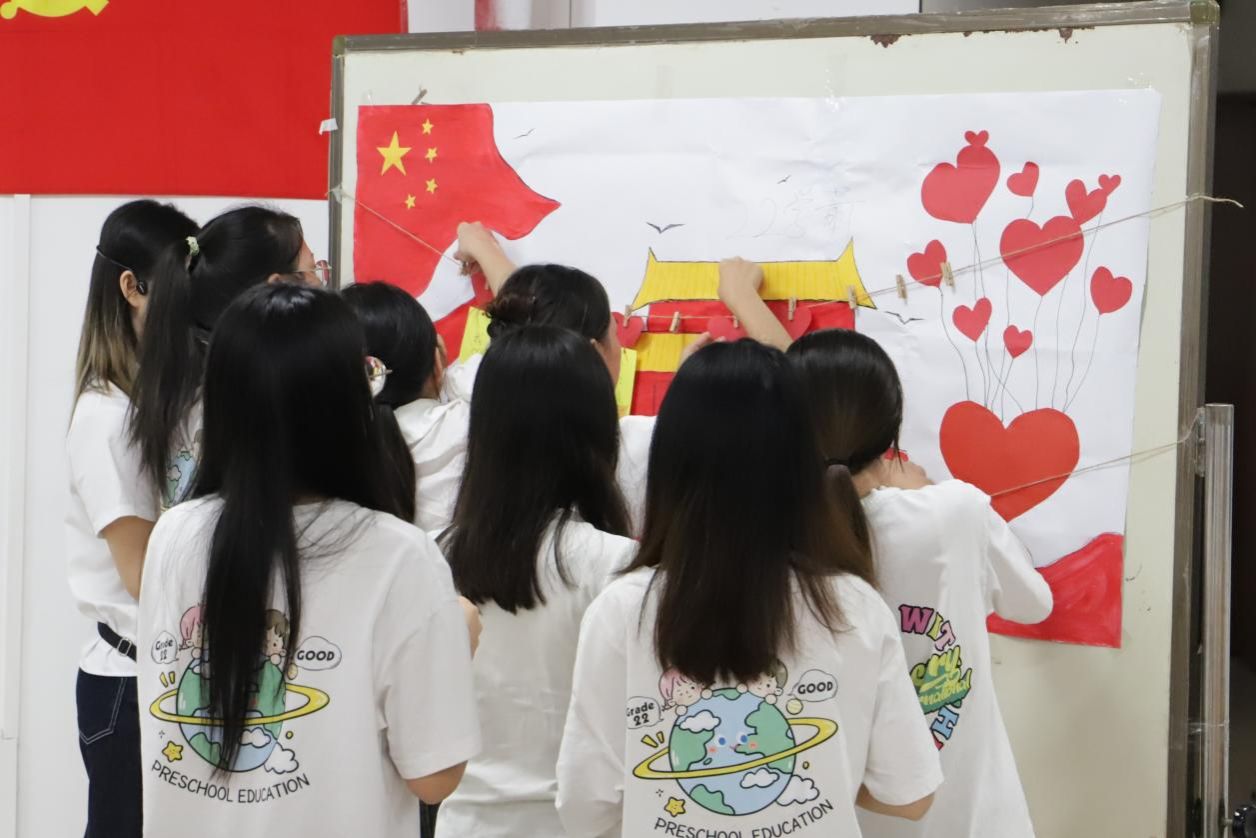 首先是全体奏唱团歌,在团歌的激情昂扬中进入到了党团主题班会展示。第一个上场的班级是2023级教育学2班,他们首先带领大家回顾了国家的发展历程,再用知识竞答和情景演绎等方式带动了同学们的积极性,最后让同学们分享了自己的梦想。第二个上场的班级是来自2022级学前教育专升本3班同学们,他们由爱国散文和影片开篇,中间插入青年应该如何担当使命。最后是来自2022级的学前教育班上场展示,他们的游戏形式新颖,中心切题,活动的创设非常有参与感。