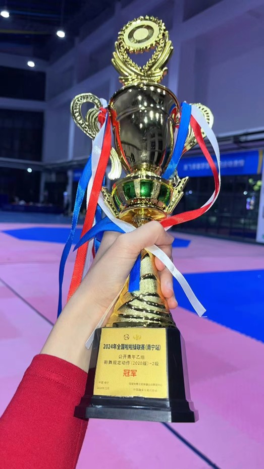在2024年全国啦啦操联赛(南宁站)中,教育科学学院光之翼艺术团啦啦队以高标准、严要求训练队伍,坚持精益求精,运用丰富且具有感染力的表演,配合整齐规范的动作最终荣获公开青年乙组-街舞规定动作(2020版)-2级冠军。