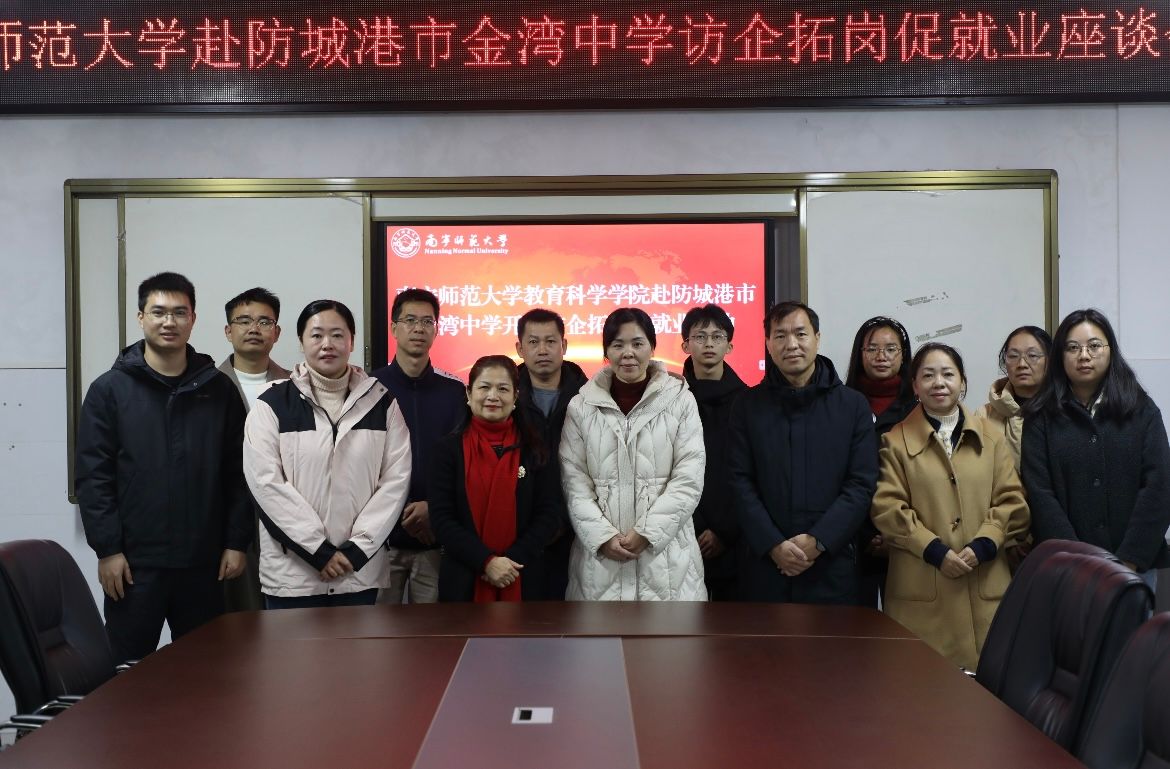 为做好2025届毕业生的就业创业工作,切实推进访企拓岗促就业行动,深化校校、校企合作,为毕业生提供更优质的就业资源与成长平台,12月12日,教育科学学院党委书记庞芳、副书记谢珊和辅导员梁精泉、巫福星一行四人赴防城港市和钦州市两地开展访企拓岗促就业活动。