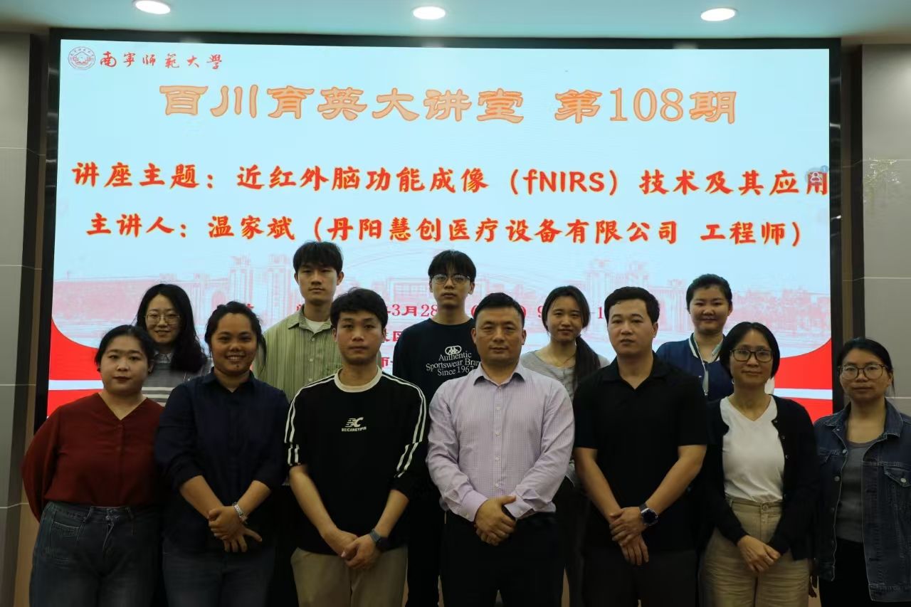为探索学习新技术在教学与研究中的应用,教育科学学院于3月28日上午在五合校区举行主题为“近红外脑功能成像(fNIRS)技术及其应用”讲座,本次讲座为百川育英大讲堂的第108期。讲座邀请丹阳慧创医疗设备有限公司工程师、南宁师范大学校友温家斌工程师主讲,教育科学学院心理学专业负责人颜志雄教授主持。